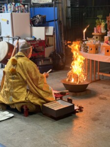 交通安全・事業繁栄を願って護摩焚きを行いました